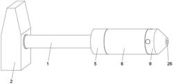 1.一种建筑工地用施工锤,包括锤杆(1),其特征在于:所述锤杆(1)一端设置有锤头(2),所述锤头(2)上设置有安装孔(3),所述锤杆(1)与安装孔(3)为插接配合设置,且锤杆(1)外表面与安装孔(3)内壁之间设置有防脱塞(4),所述锤杆(1)的一端固定连接有固定块(5),所述固定块(5)一端设置有锤把(6),所述锤把(6)的一端设置有操作头(9),所述操作头(9)的外表面一侧固定连接有放置座(10),所述放置座(10)内设置有收纳槽(11),所述收纳槽(11)内设置有操作杆(12),所述操作杆(12)的两端分别固定连接有螺丝刀头(13)与安装插头(14),所述收纳槽(11)内壁一端设置有收纳插槽(15),所述锤把(6)内设置有与放置座(10)嵌套配合的存放槽(16),所述操作头(9)与放置座(10)内对应位置设置有内槽(17),所述内槽(17)内滑动连接有活动块(18),且内槽(17)内壁与活动块(18)之间连接有弹簧(19),所述活动块(18)的外表面远离弹簧(19)的一侧固定连接有卡块(20)与连杆(21),所述操作头(9)的外表面设置有活动凹槽(24),所述活动凹槽(24)内滑动连接有操作块(22),所述操作块(22)与连杆(21)固定连接,所述存放槽(16)内壁设置有卡槽(25),所述操作头(9)的一端设置有安装插槽(26)。2.根据权利要求1所述的一种建筑工地用施工锤,其特征在于:所述锤把(6)的一端固定连接有螺纹连接头(7),所述固定块(5)上设置有与螺纹连接头(7)螺纹连配合的螺纹槽(8)。3.根据权利要求1所述的一种建筑工地用施工锤,其特征在于:所述收纳槽(11)、操作杆(12)、螺丝刀头(13)对应配合设置有多个,多个所述螺丝刀头(13)形状各不相同。4.根据权利要求1所述的一种建筑工地用施工锤,其特征在于:所述安装插头(14)与收纳插槽(15)以及安装插槽(26)均为嵌套配合设置,且安装插头(14)、收纳插槽(15)以及安装插槽(26)的截面均为六边形。5.根据权利要求1所述的一种建筑工地用施工锤,其特征在于:所述卡块(20)与卡槽(25)为嵌套配合设置。6.根据权利要求1所述的一种建筑工地用施工锤,其特征在于:所述活动凹槽(24)与内槽(17)之间通过导向槽(23)连通,所述连杆(21)与导向槽(23)为嵌套滑动连接。