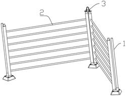 1.一种建筑工程用防护栏,其特征在于,包括立柱部和栏杆部,所述立柱部包括底座、和两根固定在底座上表面的圆柱形的杆体;所述栏杆部包括两根平行设置的空心管、和连接在两根空心管之间多根横杆;所述空心管可插拔地套设在杆体外部。