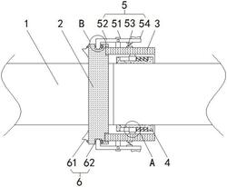 所述卡接机构(5)固定杆(51)、卡杆(52)、伸缩弹簧(53)和按压块(54),所述套筒(3)的顶部与底部均固定安装有固定杆(51),两个所述固定杆(51)的背面均活动安装有一端延伸到固定块(2)内部的卡杆(52),所述套筒(3)的顶部与底部且位于固定杆(51)的右侧均固定安装有一端与卡杆(52)固定连接的伸缩弹簧(53),两个所述卡杆(52)相背的一侧均固定安装有按压块(54)。