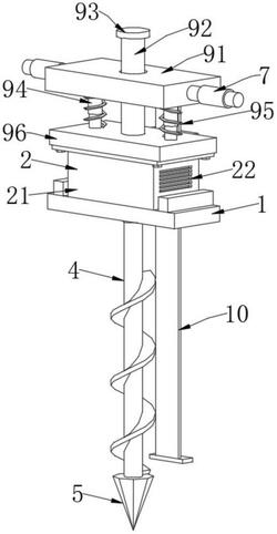 5.根据权利要求1所述的一种基于煤矿地测防治水用钻探设备,其特征在于:两个所述减震器(94)的上端固定连接有活动板(91),所述活动板(91)的中心位置处开设的通孔内滑动连接有限位滑杆(92),所述限位滑杆(92)的上端固定连接有限位板(93),且所述限位滑杆(92)的下端固定连接在所述安装板(96)上表面,两个所述减震器(94)的表面均套设有弹簧(95)。