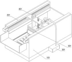 3.如权利要求1所述的用于中药材加工的洗药设备,其特征在于:所述驱动滑动部(2)包括:驱动滑动块(201)、移动支撑架(202)和移动电动螺纹杆(203),所述驱动滑动块(201)设有两个,两个驱动滑动块(201)分别固定连接在支撑箱(101)上;两个所述驱动滑动块(201)上滑动连接有移动支撑架(202);两个所述驱动滑动块(201)上分别安装有移动电动螺纹杆(203);两个所述移动电动螺纹杆(203)上分别螺纹连接有移动支撑架(202)。