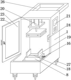 4.根据权利要求3所述的一种儿童玩具压力检测装置,其特征在于:所述壳体(1)的右端内壁固定装配有安全连锁开关(24),所述防护门(22)的内侧壁且于所述安全连锁开关(24)相对位置固定装配有插销(25),所述插销(25)与所述安全连锁开关(24)相适配。