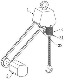 1.一种便于回链的手拉葫芦,包括手拉葫芦(1),其特征在于:所述手拉葫芦(1)的一侧传动连接设有驱动设备(2),所述手拉葫芦(1)的侧壁上固定设有辅助机构(3),所述辅助机构(3)包括限位筒(31),所述限位筒(31)的一侧设有导向筒(32)。