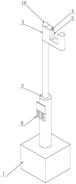 所述第一伸缩杆(2)一侧外壁固定设置有操作台(8),底座(1)底部固定设置有地钉(9)。