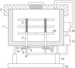 6.根据权利要求1所述的一种刨花板木料干燥器,其特征在于:所述干燥箱(1)的外侧面固定安装有吸水装置(10),所述吸水装置(10)通过管道与热风机(11)的进风端连通,所述吸水装置(10)通过管道与箱盖(2)连通。