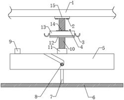 4.根据权利要求1所述的便于电气线路布线的吊顶连接结构,其特征在于,所述立柱(10)上固定连接有安装板(11),所述安装板(11)上固定连接有两个导向块(5),两个所述导向块(5)之间滑动设置有横杆(8),所述横杆(8)通过连接杆(7)和吊顶板(6)连接。