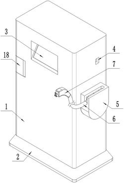 旋转座(18)和充电插口(1801);所述旋转座(18)转动连接在桩体(1)的右侧;所述充电插口(1801)设有多个,多个充电插口(1801)分别固定安装在旋转座(18)朝向桩体(1)的两面。