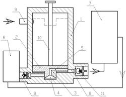 3.如权利要求1所述的石油气体液化分离处理系统,其特征在于:所述气缸(1)靠其顶端处连接有进气管道(9),进气管道(9)与气缸(1)的接口位于活塞(2)上移至极限的位置以下。
