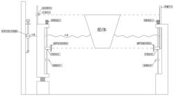 所述升降机构(2)设置有两组,分别等高安装在船体的两侧的岸边,升降机构(2)包括安装在岸上的伺服电机(21),伺服电机(21)的输出端连接有螺旋杆(22),螺旋杆(22)的下端竖直延伸到水底,螺旋杆(22)的表面活动连接有升降块(23),升降块(23)下方的螺旋杆(22)表面活动连接有清理组件(7),清理组件(7)用于清理螺旋杆(22)表面的污垢,伺服电机(21)由控制机(1)通过电信号进行控制;