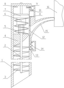 1.一种土壤检测系统,包括采样部件和测试皿,其特征在于:所述采样部件包括用于插入土壤内的取样管(1),所述取样管(1)内同轴地安装有转轴(2),转轴(2)的下段固定有螺旋叶片(3),螺旋叶片(3)的顶端上方安装有套设在转轴(2)上的承压块(4),承压块(4)弹性滑动地安装在取样管(1)内,所述承压块(4)顶部与杠杆臂(9)接触时,杠杆臂(9)挤压一个按钮,所述按钮被压下后令一个电磁铁(10)通电;