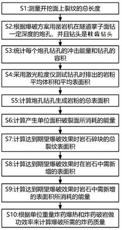 1.一种通过钻孔过程特征计算隧道爆破炸药用量的方法,其特征在于,包括如下步骤:步骤1:测量隧道开挖面上裂纹的总长度 ;