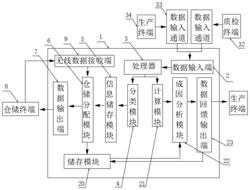 所述生产终端(34)和质检终端(32)均与信息处理平台(1)电性连接,所述信息处理平台(1)内部设置有处理器(3),所述处理器(3)输出端设置有仓储模块和反馈模块,质检终端(32)收集产品质检数据,反馈模块根据质检数据计算出产品生产过程中的问题和产品合格率;