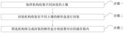 4.根据权利要求3所述的一种土壤检测修复系统的修复方法,其特征在于:所述步骤三对装有不同深度的梯形盒进行存放时,螺旋片(309)在连接杆(307)的表面形成螺旋槽,由于配合杆(313)呈倾斜设置,因此梯形盒会根据自身大小掉入不同位置的储存箱(312)。
