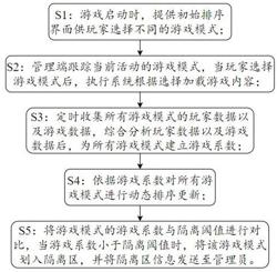 步骤S3中,定时收集所有游戏模式的玩家数据以及游戏数据,玩家数据包括游戏模式点击率以及游戏模式运行时长率,游戏数据包括玩家在线离散指数以及游戏崩溃浮动系数;