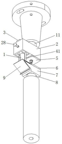 6.根据权利要求1所述的一种小V型结构件电阻点焊电极,其特征在于,所述上电极握杆(11)和所述下电极握杆(8)的外接端均为长锥端,且所述上电极握杆(11)的长锥端插入所述上电极座内,所述下电极握杆(8)的长锥端插入所述下电极座内。