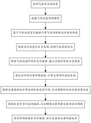 检测气体的当前温度,构建气体温度预测模型,得出温度变化的具体数值;利用线性回归算法,建立气体热膨胀或冷缩预测模型,基于气体温度变化数据计算气体热膨胀或冷缩的程度;根据实时温度和压力监测,预测气体体积变化;根据气体流速和体积变化数据,建立流速和体积关系模型,基于气体体积变化预测气体流速变化;通过实时的流量测量数据,计算与预测流速的差值;根据流量数据的异常检测和稳定性评估,自动调整和校准流量测量设备;根据历史和实时监测数据,自动调整所述流量测量设备的校准周期;使用预测数据和实时数据,进行设备的流量测量校准。