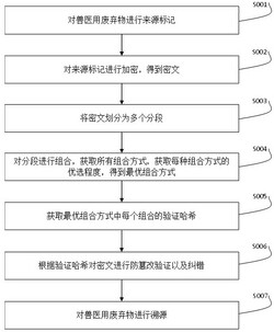 区块链根据密文以及每个组合的验证哈希对密文进行防篡改验证以及纠错;根据纠错后的密文进行兽医用废弃物溯源;