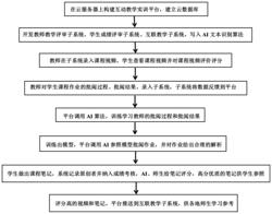 课程笔记模块,用于学生发布自己对课程和实训的学习心得或笔记;步骤三:教师对学生课程作业或实训内容的批阅过程、批阅结果,全部录入到教师教学评审子系统中,子系统将全部数据反馈到平台,平台调用AI文本识别算法,训练学习教师的批阅过程和批阅结果,并训练学习步骤二所述的录入课程视频;