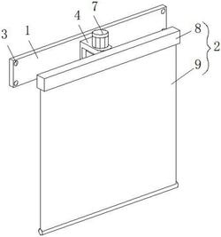 1.投影仪幕布调节装置,包括固定板(1),以及固定板(1)上设置的投影仪幕布机构(2),其特征在于:所述固定板(1)四角开设有安装孔(3),所述固定板(1)中心处设置有U型座(4),所述U型座(4)内底部通过轴承(5)设置有弧形转块(6),所述U型座(4)顶部设置有步进电机(7),所述投影仪幕布机构(2)包括收卷盒(8)、幕布(9)、配重杆。