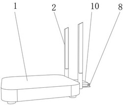 1.信息技术服务设备,包括路由器(1),所述路由器(1)背面转动连接有天线(2),所述天线(2)有两个,两个所述天线(2)分别分布在所述路由器(1)背面左右两侧,所述路由器(1)背面右侧开设有接口(3),所述路由器(1)背面左侧开设有电源接口(4),所述路由器(1)底部固定安装有固定块(5),所述固定块(5)有两个,两个所述固定块(5)相互平行,两个所述固定块(5)的相视面相互连接,所述固定块(5)底部固定安装有滑块(6),所述滑块(6)有两个,两个所述滑块(6)分别分布在所述固定块(5)左右两侧,其特征在于:所述滑块(6)外壁滑动连接有连接装置。