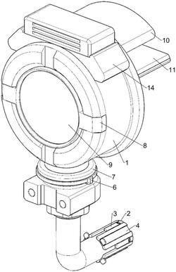 1.一种配电柜温度监控设备,包括有温度计(1)和环形支撑块(6),温度计(1)上侧安装有环形支撑块(6),其特征是:还包括有安装块(2)、卡板(3)、限位块(4)、第一弹性件(5),温度计(1)安装口均匀间隔套设有多个安装块(2),安装块(2)后侧均连接有卡板(3),卡板(3)与安装块(2)之间连接有第一弹性件(5),卡板(3)之间的间隙连接有限位块(4)。