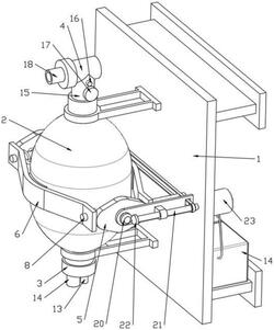 5.根据权利要求1所述的一种呼吸内科急用呼吸系统,其特征在于:所述凸轮(9)内固定连接有第一连接轴(19),所述第一连接轴(19)圆周面固定连接有第一锥齿轮(20),所述固定架(1)内转动连接有第二连接轴(21),所述第二连接轴(21)前端固定连接有第二锥齿轮(22),所述第一锥齿轮(20)与第二锥齿轮(22)啮合,所述第二连接轴(21)圆周面固定连接有皮带轮,所述皮带轮之间通过皮带连接,所述固定架(1)后端固定连接有马达(23),所述马达(23)输出端与第二连接轴(21)之间固定连接。