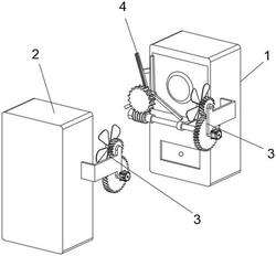 所述清洁组件(3)还包括固定连接于发射器(1)侧壁上的固定架(312),所述固定架(312)的外壁转动连接有小齿轮(313)和大齿轮(310),所述大齿轮(310)与小齿轮(313)相啮合,所述风扇(314)通过轴杆与小齿轮(313)固定连接;