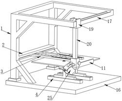 1.一种石材倒角切割装置,包括支撑架(1)、底板(16)、倒角切割机(25),其特征在于: