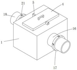 所述过滤机构包括过滤箱、安装框、过滤板、密封板和两个固定组件,所述安装框滑动安装在过滤箱内,所述安装框的顶部延伸至过滤箱外,所述过滤板安装在安装框内,所述密封板固定安装在安装框的顶部,所述固定组件包括矩形块、第一腔体、L形杆、环形块和第一弹簧,所述矩形块固定安装在过滤箱的顶部,所述第一腔体开设在矩形块上,所述L形杆滑动安装在矩形块上,所述环形块固定套设在L形杆上,所述第一弹簧滑动套设在L形杆上,所述第一弹簧的一端与环形块固定连接,所述第一弹簧的另一端与第一腔体的内壁固定连接;