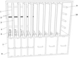 4.根据权利要求3所述的一种新能源汽车配件货架,其特征在于:所述底框(7)内左右两侧的抽拉槽(20)采用不同宽距,不同宽距抽拉槽(20)内的抽拉柜(23)宽度不同。