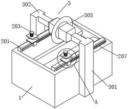 4.根据权利要求3所述的一种石英板切割机,其特征在于,所述支撑滑轨(201)的两侧均固定有支撑滑杆(206),所述辅助导向块(205)套设于所述支撑滑杆(206)上,所述辅助导向块(205)的一侧固定连接有顶推弹簧(207)。