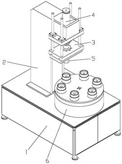 2.根据权利要求1所述一种电子元器件自动涂胶装置,其特征在于:所述转盘组件包括下转盘、上转盘和内转盘,所述下转盘与底座上滑动连接,所述下转盘上嵌入安装有上转盘,且两者之间设有内转盘,三者为滑动连接,所述第一电机安装于下转盘底中部,且第一电机输出端与内转盘底中部连接,所述高度调节机构安装于内转盘内部。