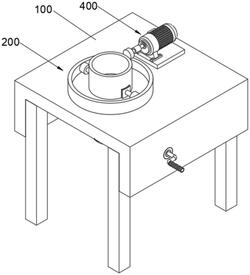 1.一种模具毛边打磨床,其特征在于:包括床体(100),所述床体(100)表面设有转动组件(200),所述转动组件(200)用于放置模具并带动模具转动,所述转动组件(200)用于提高模具转动精准效率,所述转动组件(200)侧边设有打磨装置(400),所述打磨装置(400)用于对转动组件(200)内部放置的模具毛边进行打磨。