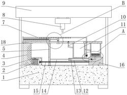 6.根据权利要求1所述的一种机械零部件加工用加工中心,其特征在于,所述加工平台(18)的底部靠近左右处插接有排水管(10),所述排水管(10)的右端插接在出料桶的左侧处,且所述加工平台(18)的顶端处固定连接有挡料板。
