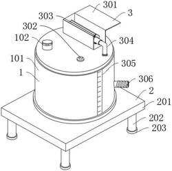 4.根据权利要求3所述的一种润滑油过滤设备,其特征在于:所述便捷机构(3)包括防护罩(301)、冷却装置(302)、开关(303)、气管(304)、刻度表(305)和喷油口(306),所述防护罩(301)固定安装在油桶(101)的上端。