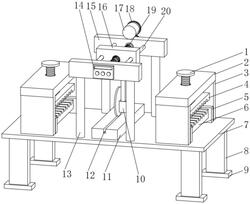 6.根据权利要求1所述的一种电缆切割装置,其特征在于:所述工作台(7)的底面固定安装有四个支撑腿(8),每个所述支撑腿(8)的底面均固定安装有支撑座(9)。