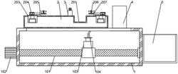 1.一种高精度的瓦楞纸板飞剪用裁切装置,包括支撑台(1),所述支撑台(1)的上端面滑动连接有工作台(2),其特征在于:所述工作台(2)上端面的左右两侧均开设有滑槽(203),两个所述滑槽(203)的内部均安装有电动滑轨,所述工作台(2)上端面的左右两侧均安装有两个通过电动滑块与电动滑轨滑动连接的第一气缸(204),四个所述第一气缸(204)的输出端均固定连接有固定板(205),四个所述固定板(205)的上端面均贯穿安装有螺杆(206),四个所述螺杆(206)的下端面均安装有压板(207);