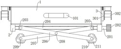 两个螺纹条(203),对称螺纹套设在所述双向丝杆(201)的外表面,且两个螺纹条(203)靠近两端的相对一侧均活动嵌设有导向杆(204),且两个导向杆(204)的两端分别固定安装在两个螺纹条(203)的相对一侧;