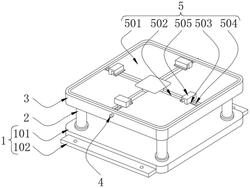 1.一种纸箱包装用切割定位装置,包括支撑组件(1),其特征在于:所述支撑组件(1)的上端四角设置有液压缸(2),且液压缸(2)的上端连接有放置槽架(3),所述放置槽架(3)的侧方表面设置有快拆机构(4),且放置槽架(3)的内部卡合有限位机构(5),所述限位机构(5)包括托板(501),且托板(501)的表面内侧开设有限位槽(502),所述限位槽(502)的内部卡合有限位块(503),且限位块(503)的侧方连接有电动推杆(504),所述限位块(503)的上端固定有卡架(505)。