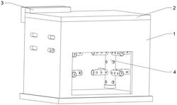 所述散热单元(4)包括滑槽(401),所述滑槽(401)开设在顶板(2)的下侧,所述滑槽(401)的内侧滑动连接有滑板(403),所述滑槽(401)的内侧转动连接有螺杆(402),所述螺杆(402)的后端穿过顶板(2)的后侧且外侧固定连接有齿轮件一(415),所述顶板(2)的后侧且位于齿轮件一(415)的左右两侧均转动连接有转杆(413),左右两侧所述转杆(413)的外侧均固定连接有不完全齿轮(414),所述转杆(413)的外侧且位于不完全齿轮(414)的后方固定连接有齿轮件二(416),所述滑板(403)的下侧转动连接有两个主管(404),所述主管(404)的外侧固定连接有多个分管(405),所述主管(404)与分管(405)的外侧均开设有通风孔(406)。