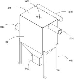 所述除尘箱体(01)两侧靠近顶端和底端的位置分别设置有出气管(014)和进气管(013),所述除尘箱体(01)顶端设置有盖板组件;