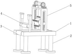 6.根据权利要求1所述的一种多功能面料加工用剪毛机的刷毛机构,其特征在于:所述辅助清理机构(4)包括固定柱(41),所述固定柱(41)固定连接于剪毛机本体(1)顶部左侧,所述固定柱(41)顶部固定连接有顶板(42),所述顶板(42)底部前侧固定连接有气缸(43)。