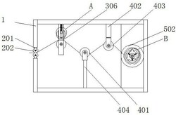 1.一种纺织纤维丝拉直装置,包括拉直装置主体(1)、导线机构(2)、压辊机构(3)、调节机构(4)和收卷机构(5),其特征在于,所述拉直装置主体(1)的进口处设置有导线机构(2),所述导线机构(2)的一侧设置有压辊机构(3),所述压辊机构(3)的一侧设置有调节机构(4),所述调节机构(4)的一侧设置有收卷机构(5);所述收卷机构(5)包括收卷电机(501),所述收卷电机(501)的一端设置有安装盘(502),所述安装盘(502)的一侧设置有限位盘(503),所述收卷电机(501)的输出端连接有收卷辊(504),所述收卷辊(504)的外部连接有若干根连接杆(505),所述连接杆(505)的另一端均连接有第二弹簧(506),所述第二弹簧(506)的另一端均连接有压板(507)。