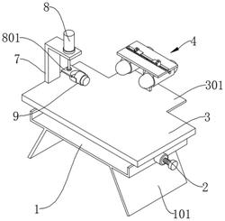 7.根据权利要求1所述的一种无人机故障维修工作台,其特征在于:所述台面(3)的上端面一端固定有安装架(7),所述安装架(7)的顶部固定有气缸(8),所述气缸(8)的机轴竖直向下并固定有活动架(801),且所述活动架(801)上安装有相机(9)。