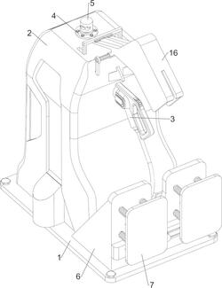 器(19)、接触块(20)、触发按钮(21)和鸣笛器(22),支撑板(6)前侧安装有报警器(19),挡板(7)后侧固接有接触块(20),报警器(19)前侧嵌入式设置有触发按钮(21),触发按钮(21)与报警器(19)电连接,报警器(19)前侧嵌入式设置有鸣笛器(22),鸣笛器(22)与报警器(19)电连接。