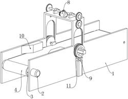 7.根据权利要求6所述的一种用于五金法兰生产线的法兰翻转机构,其特征在于:所述第一支杆(921)的长度小于两组第二支杆(922)的长度,所述生产支架(1)内侧的上端对称焊接有两组引导块(10),且两组引导块(10)的水平横截面均呈直角梯形设置。