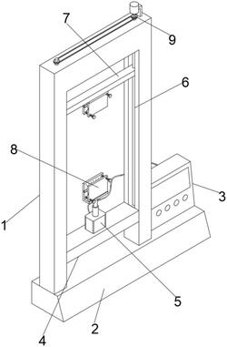 3.根据权利要求1所述的一种布料生产用检测拉伸装置,其特征在于:所述间隔调节装置(9)包括螺纹丝杆(10)、主动电机(11)、皮带轮(12)和皮带(13),所述装置机架(1)中两侧限位竖槽(6)的底部内壁均转动安装有螺纹丝杆(10),且螺纹丝杆(10)顶端贯穿延伸出装置机架(1)的顶部外壁,所述位移横板(7)滑动卡接在两侧限位竖槽(6)中两端均与螺纹丝杆(10)螺纹套接,两组所述螺纹丝杆(10)贯穿延伸出装置机架(1)顶部的外壁上均固定套接有皮带轮(12),且两组皮带轮(12)之间套装有同一组皮带(13),所述装置机架(1)的顶部外壁通过电机支架固定安装有位于螺纹丝杆(10)顶端上方的主动电机(11),且主动电机(11)竖直向下的输出轴与螺纹丝杆(10)的顶端固连。