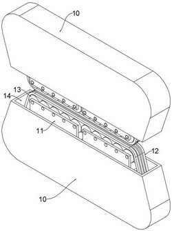 3.根据权利要求2所述的一种电缆迁移装置,其特征在于:上端的所述导滑箱(24)的上端连接设有电磁块(17),位于下端的所述导滑箱(24)的下端面上连接设有压力传感器(21),所述压力传感器(21)与所述缓冲弹簧(22)连接,上下两组所述滑动杆(20)相互靠近端均固设有动力箱(11),每个所述动力箱(11)内均转动连接有左右均匀分布的转动对辊(13),所述上张力辊(15)与上侧的所述转动对辊(13)、所述下张力辊(23)与位于下侧的所述转动对辊(13)之间均抵接有运送带(12)。