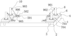 3.根据权利要求2所述的一种建筑施工跳板支架,其特征在于:所述第二方形板(906)的顶部均固定连接有第二连接块(907),所述第二连接块(907)的一侧均固定连接有斜杆(902),所述斜杆(902)的顶端均固定连接有第一连接块(903)。