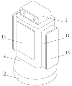 6.根据权利要求5所述的一种新型迎宾机器人,其特征在于:所述防撞板(16)的内侧固定连接有位于缓冲器(15)外部的弹力布(17),所述弹力布(17)的内侧与外壳(1)的表面固定连接。